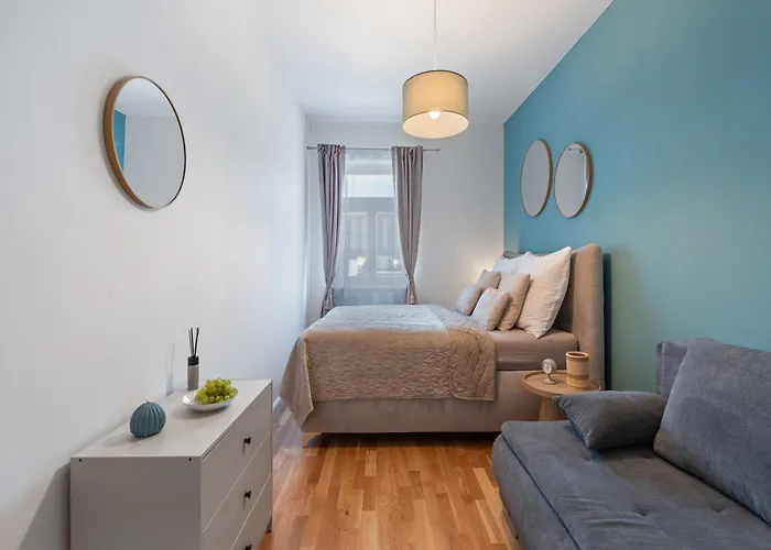 Teatr Narodowy w Pradze znajduje się 18 min pieszo od apartamentu o powierzchni 55 m², a Letenské sady - około 10 min jazdy autem. Wzgórze Petrzyn znajduje się 2 km od apartamentu. Pomnik Świętego Wacława leży w mniej niż 50 metrach.